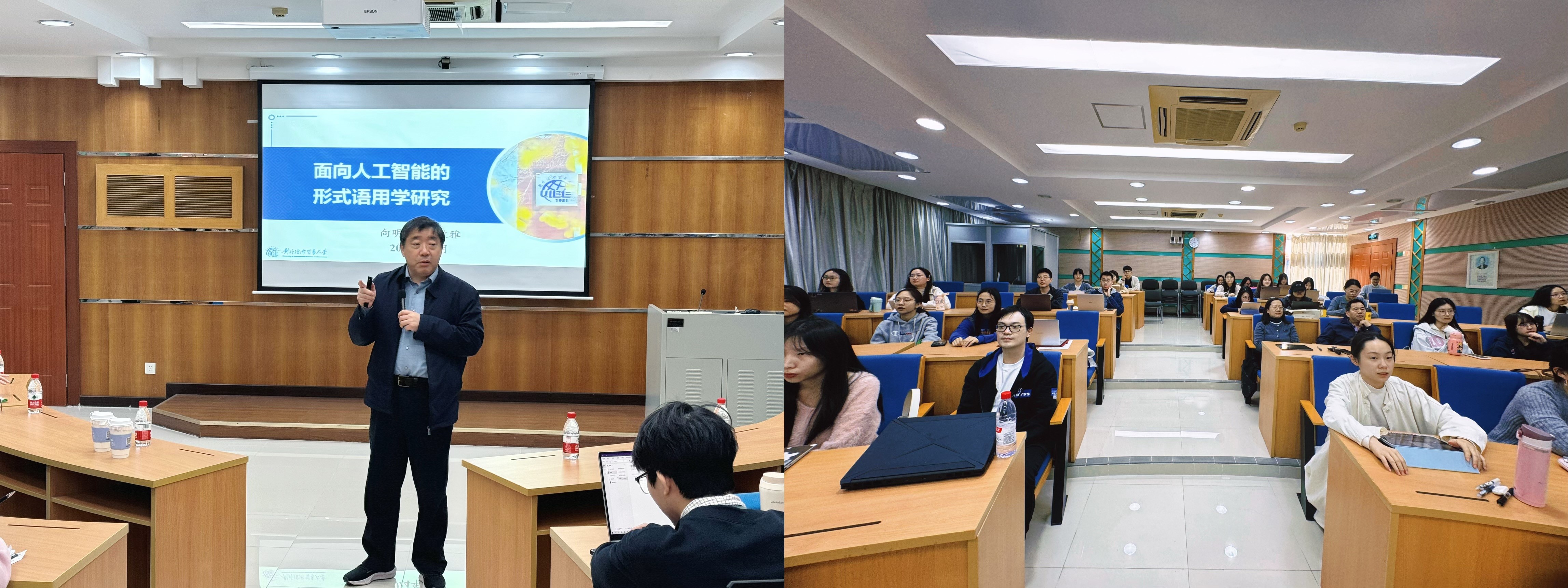 本网讯 2024年11月28日下午14:30,由广东外语外贸大学人力资源部(教师发展中心)主办、广东外语外贸大学国际商务英语学院承办的著名教授论坛第676讲在广外白云山校区第九教学楼MBA中心103室顺利举行。本次讲座由对外经济贸易大学向明友教授主讲,国际商务英语学院陈潇潇副院长主持,讲座以“面向人工智能的形式语用学研究”为题,近60名各学院教师和博硕士研究生参加此次论坛讲座。