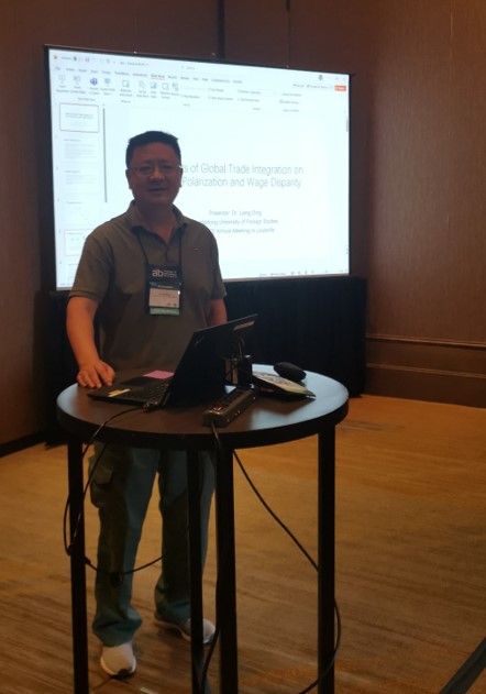 2025年6月28日至2025年7月2日,2025年国际商务学会年会(Academy of International Business,AIB 2025)在美国路易斯维尔的Omni Louisville Hotel举办,我院外教丁梁博士应邀赴美参会。本届年会围绕全球贸易、国际营销、跨国公司管理、国际金融等领域开展专题论坛、圆桌讨论会、论文发表工作坊、自由讨论会以及职业指导等活动。丁梁博士为第一作者的论文 “Effects of Global Trade Integration on Skill Polarization and Wage Disparity” 经同行评审后被本次年会接收,并在会场上进行了论文汇报和交流,展示了我院在国际贸易与劳动市场领域的学术成果。