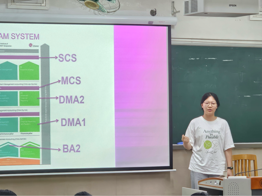 随后,Frank老师从CGMA的培养目标切入,系统讲解了CGMA的全球认证背景、课程结构以及考试进阶路径,帮助同学们全面认识这一国际化的管理会计专业。他指出,CGMA不仅重视技术能力,更注重商业洞察、战略思维与领导力的培养,为学生未来进入企业管理和财务决策领域奠定坚实基础。