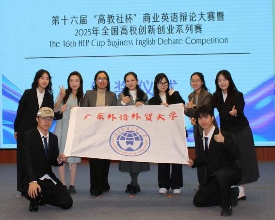 11月30日,第十六届“高教社杯”商业英语辩论大赛暨2025年全国高校创新创业系列赛总决赛于上海圆满落幕,我院首次组队参赛便交出亮眼答卷:三支队伍全部晋级全国总决赛,广东外语外贸大学成为本届大赛唯一拥有两支队伍进入八强的高校。经过两天的激烈辩论,“麦当劳随心配队”与“星光熠熠队”击败多所985、211高校,最终斩获一等奖金奖、一等奖银奖及二等奖等殊荣,以实力彰显广外学子的国际化素养与综合能力。