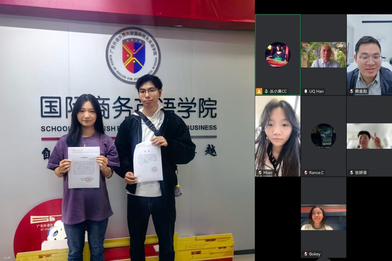 12月12日下午,国际商务英语学院在三教317会议室举行广东外语外贸大学-昆士兰大学硕士班第28期学员结业典礼暨行前培训会,会议以线上会议的形式举行。昆士兰大学商业、经济与法律学部国际联络官ZHU HAN先生,商英学院国际项目中心的老师出席活动。