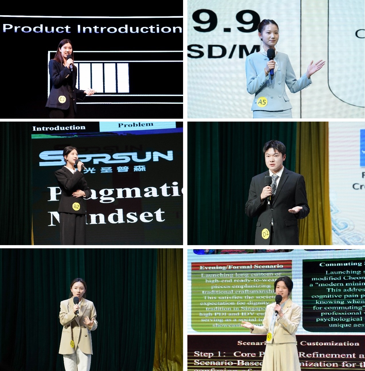 顺利晋级的六支参赛队伍以对跨文化传播的深刻洞察与创新实践,点亮了这场思想交锋的决赛之夜。浙江外国语学院的Fabulous 7队针对小度智能健康屏出海,提出从合规认证到语音交互的渐进式适配路径,设计线下服务与社区体系,塑造“银发智慧伙伴”全球形象;广东技术师范大学的High Win Legion队深入剖析热泵企业圣普森出海案例,针对决策层与产品层的双重瓶颈,提出AI跨文化决策系统与模块化文化适配体系并行的解决方案;广东外语外贸大学的Deepspur队以科技企业金戈新材为样本,为其规划“轻资产、快渗透、深绑定”的欧洲拓展路径,通过设立研发中心、绑定本地伙伴等阶段举措,为中小科技企业出海提供兼具战略与实操的参考范例;上海对外经贸大学Heritage Weaver队以非遗“金山丝毯”为研究对象,通过实地调研提出“文化转译与场景融合”策略,开发文创衍生品、打造双城互动展览,推动传统工艺成为当代生活美学载体;北京语言大学的Hike Talk Team队通过调研提出“Hike Talk Moment”线下论坛方案,该方案以敬畏生命、自然智慧与共享未来为三大支柱,构建融合内容共创与户外探索的跨文化生态,助力中国自然叙事品牌走向全球;四川外国语大学的Team Culturenexus队以旗袍品牌为研究对象,通过多维度分析提出以新加坡为试点的“三层生态系统”策略,推动旗袍从传统服饰转型为可全球传播的文化生活方式符号。
