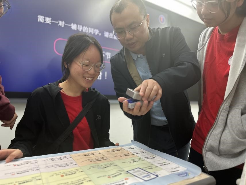 班会还设置了职业测试小游戏,通过情景互动帮助同学们探索个人兴趣与能力,现场气氛轻松活跃。