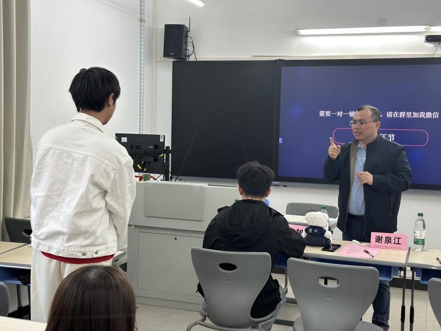 在答疑环节,同学们踊跃提问,围绕专业选择、技能提升、实习准备等问题与导师深入交流。谢泉江老师一一回应,并提供了简历优化、面试技巧、人脉搭建等方面的实用建议。