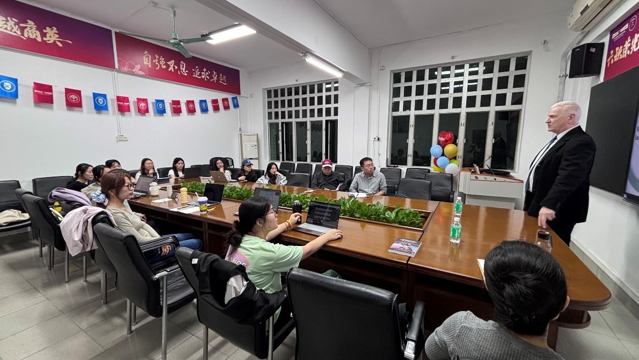 2025年11月25日至12月16日,我院云山讲座教授 Terrence Royce于北校区第三教学楼331会议室成功举办了四场法律语言学专题系列讲座。来自商英学院及全校其他学院的110余名师生共同参与了此次学术活动。