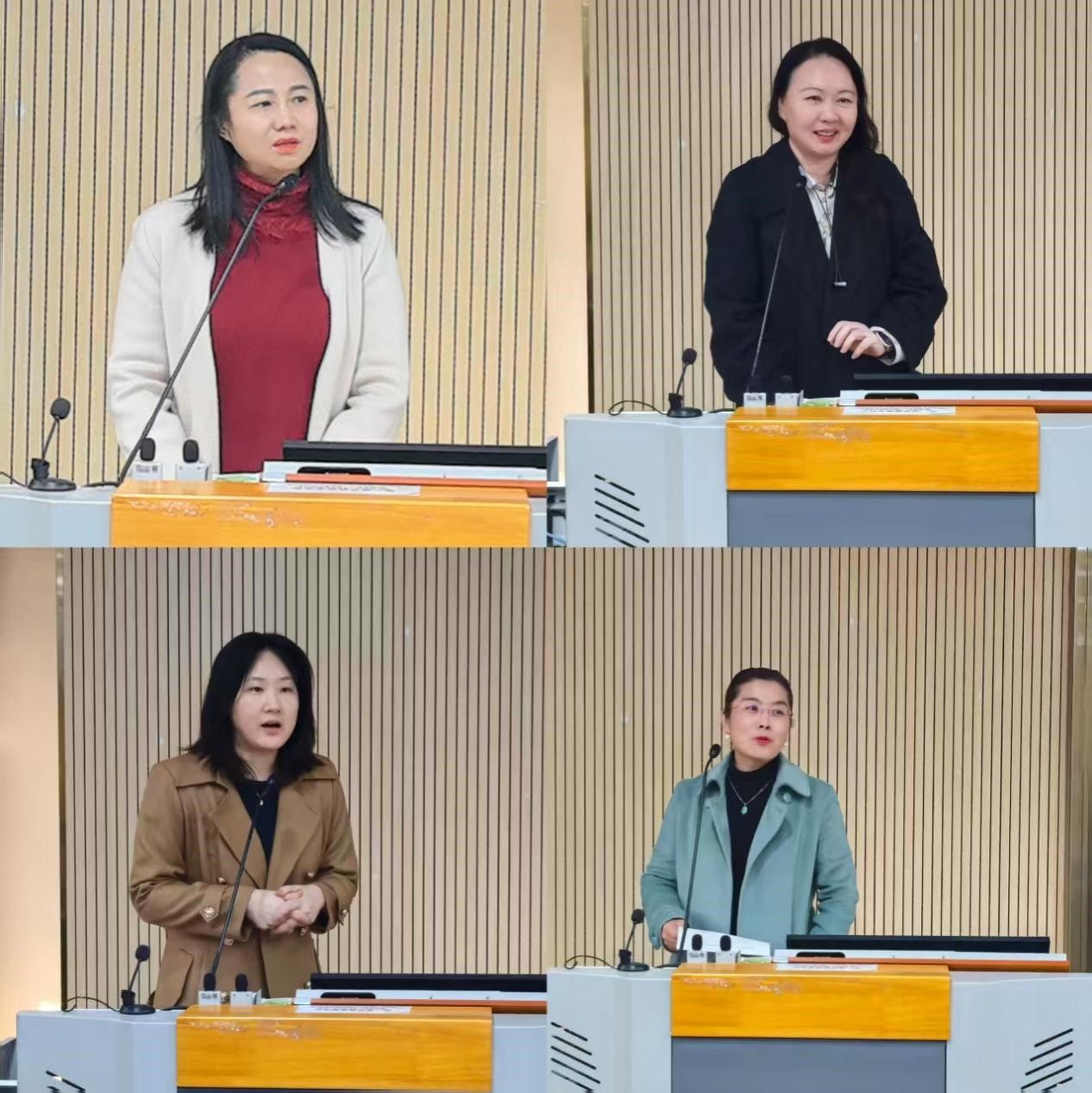 杨文慧副院长、陈潇潇副院长、乐思伟院长助理、杜焕君副书记,分别就国际交流、行政和财务工作,研究生教育教学,本科教育教学和学生工作等方面作学期总结。