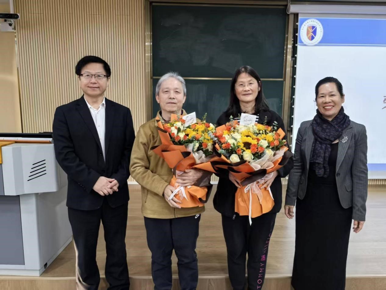 荣休仪式环节,苏冬燕书记、胡春雨院长为荣休教师曾宪明、王美宁老师献花,对他们的辛勤付出表示感谢。两位老师深情回忆与学院共成长、与同事共奋斗的美好岁月,饱含对广外商英的深厚情谊,感动了全院教工。苏冬燕和胡春雨表示,两位老师把美好的青春奉献给党的教书育人事业,为学院的建设发展、为商英学子的健康成长做出不懈努力,恳请老师们继续关心学院发展、多提宝贵意见与建议。