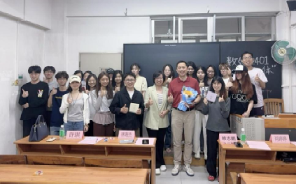 2026年3月19日下午,商务英语(数字媒体管理)2401班(以下简称“数媒2401班”)“四导一体”见面会顺利开展。数媒2401班校外导师林海杰(1994级校友)、班级导师许琪教授、辅导员赖志鹏老师、朋辈导师肖婷婷以及数媒2401班全体同学参与本次活动,见面会由班长詹鑫越主持。