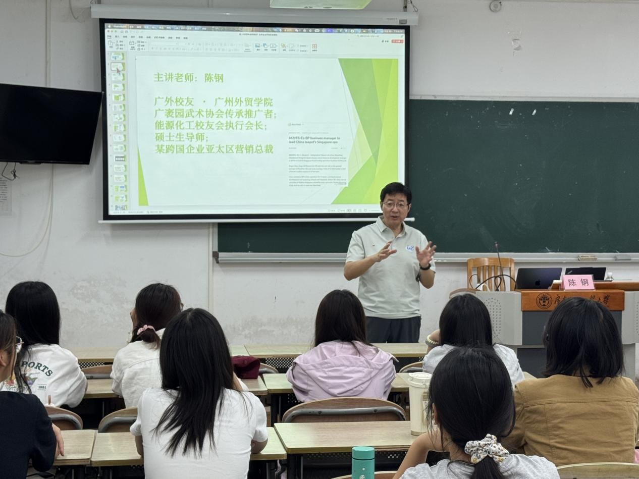 会上,陈钢师兄结合自身丰富的职业经历,为同学们带来了一场充满温度与力量的成长分享。他以“从平凡起步,在试错中前行”为主线,回顾了自己从广外求学、初入职场到深耕能源化工行业的历程,分享了在多次尝试与转型中积累的实践经验,以及在行业中逐步建立起专业影响力的过程。他还讲述了自己持续学习的经历,强调终身学习的重要性。