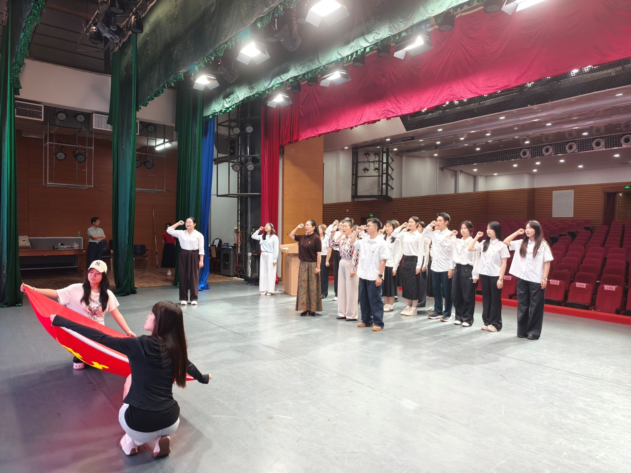 随后,苏冬燕书记向临时党支部党员代表授旗。党员代表黄淼发言,表示将以高标准严格要求自己,带头履职尽责,展现党员风貌,带领同学们圆满完成实习任务。