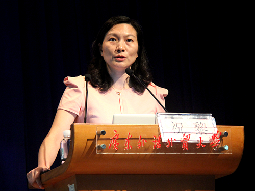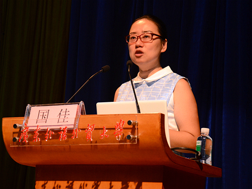国佳副处长首先对商英学子的到来表示欢迎和祝贺,并简要回顾了商英新生的“满月”之旅。在“学生教育服务管理”的专题教育中,她指出高中与大学最大的区别就在于大学生开始真正独立,并从“学习”“竞赛”“组织”“部门”和“实习”等方面,结合大量的优秀“商英范儿”与在场新生一起探讨了如何独立、如何选择和如何成长。最后,国佳亲切寄语,希望商英16级学子用心走过一段广外路,收获一生广外情。