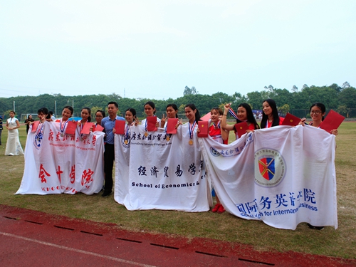 11月17-19日,广东外语外贸大学校田径运动会在南校体育场举行。商英学院新组建的田径队首次代表我院参加了本次校运会学生组比赛,取得了团体总分第四名和道德风尚奖的优秀成绩。
