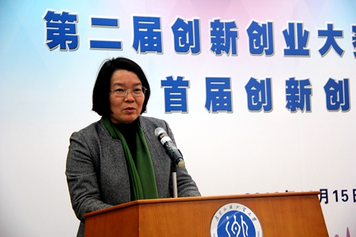 王秀民代表学院致辞,她对出席本次仪式的领导、嘉宾和师生共谋商英创新事、共话商英创业情表示欢迎和感谢。她简要回顾了2015年首届创新创业大赛取得的成就,表示在学校的领导和支持下,学院将一如既往的做好大学生创新创业工作,提高人才培养质量。
