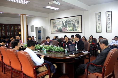 陈岸涛教授做题为“微时代的大学生特征与思想教育转型”的主题报告,他紧扣社会背景与发展现实,以丰富的案例,幽默的语言,风趣的讲解,充分论证了微时代所具有的六大特征,并以此为基础指明了微时代大学生的四个鲜明特点,最后从肯定微时代下大学生的优点;教师如何培养学生的自我认知能力、社会认知能力、是非辨别能力和社会实践能力等四种能力;提高对大学生的网络舆情引导水平三个方面探讨了思想教育的转型。陈教授的专家报告观点鲜明、见解独特、富有哲理,引起了现场听众的共鸣,得到了导师们的一致好评。