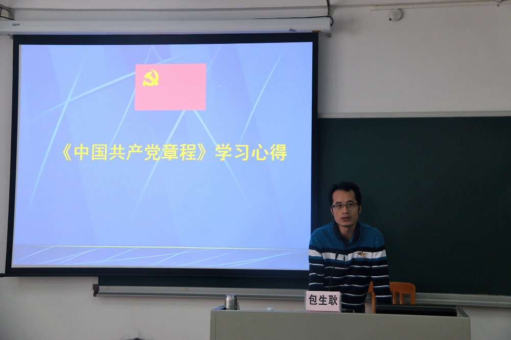 11月1日下午,商英学院第7期发展对象专题党课在六教B207课室举行,校党委组织部组织科包生耿老师以“《中国共产党章程》学习心得”为主题,为全体学员上了一堂深刻而生动的党课。