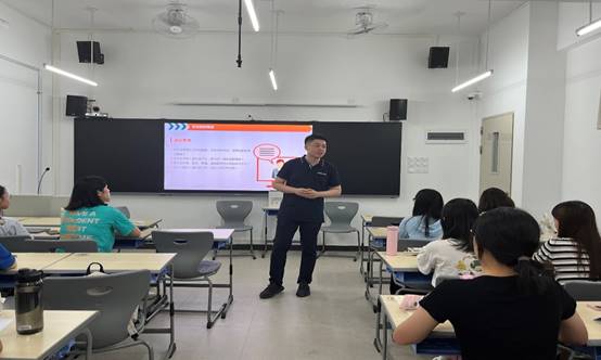 企业人力部总监何维及其团队担任本次企业文化的推广导师。在当日上午举行的开班仪式中,团队通过破冰游戏促进学生间的彼此交流及团队融合,为导入课程做铺垫。在企业文化课堂中,何总监通过谈文化的定义和起源、优秀文化的重要性、企业文化的内涵和功能、不同企业文化的举例和企业文化的认识误区七个板块引导学生走进和了解企业文化。而后又从精神层文化、制度层文化、物质层文化的同心圆模型三个层面讲解企业文化体系,增强了学生对企业使命愿景和价值观的了解,引发了学生对推广企业文化的价值和措施的深入思考。