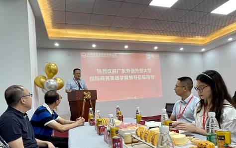 在欢迎仪式上,李善兵详细介绍了公司的发展历程及主营业务。东莞市慧发刺绣有限公司,前身是成立于2001年的东莞市茶山惠发电脑机绣车花厂和东莞市茶山慧发电脑机绣花厂,2007年开办外贸公司东莞市派奇刺绣礼品有限公司,并于2018年改名为东莞市慧发刺绣有限公司。公司团队现有120人左右,其中硕士9人,本科近百人。公司在东莞、深圳、重庆均有写字楼,目前产品有三四百个品类,供应商四五百家工厂,产品出口到全球五十多个国家和地区。近年来,慧发刺绣与商英学院开展多种形式合作,目前共有10名商英学院毕业生就职于此。