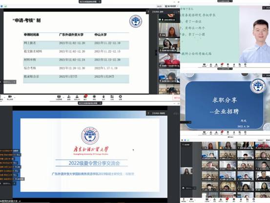 为促进青年学子之间的相互交流,增进全国优秀大学生对我院相关专业及研究生培养的了解,2022年6月24日、6月25日,广东外语外贸大学国际商务英语学院于云端成功举办了“2022年优秀大学生暑期夏令营”,经遴选,来自全国各地高校的40余位优秀学子参加了此次活动。