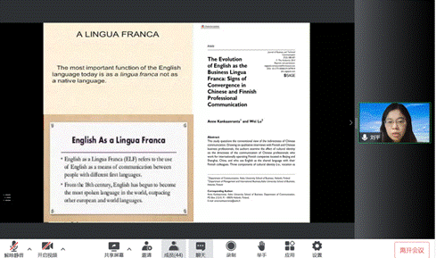 6月24日下午,国际商务英语学院刘平教授和徐优平副教授分别就商务英语研究和法律语言学两个专业方向为夏令营学员带来了两场精彩的学术讲座。刘平教授向大家讲授了商务英语研究的前沿与热点以及商务英语研究的培养目标,徐优平副教授化身“学术导游”,带领学员们了解什么是法律语言学及其相关研究。两位学术讲座嘉宾就自身学习与研究经历,让学员们对商务英语研究和法律语言学研究有了更清晰的认识。