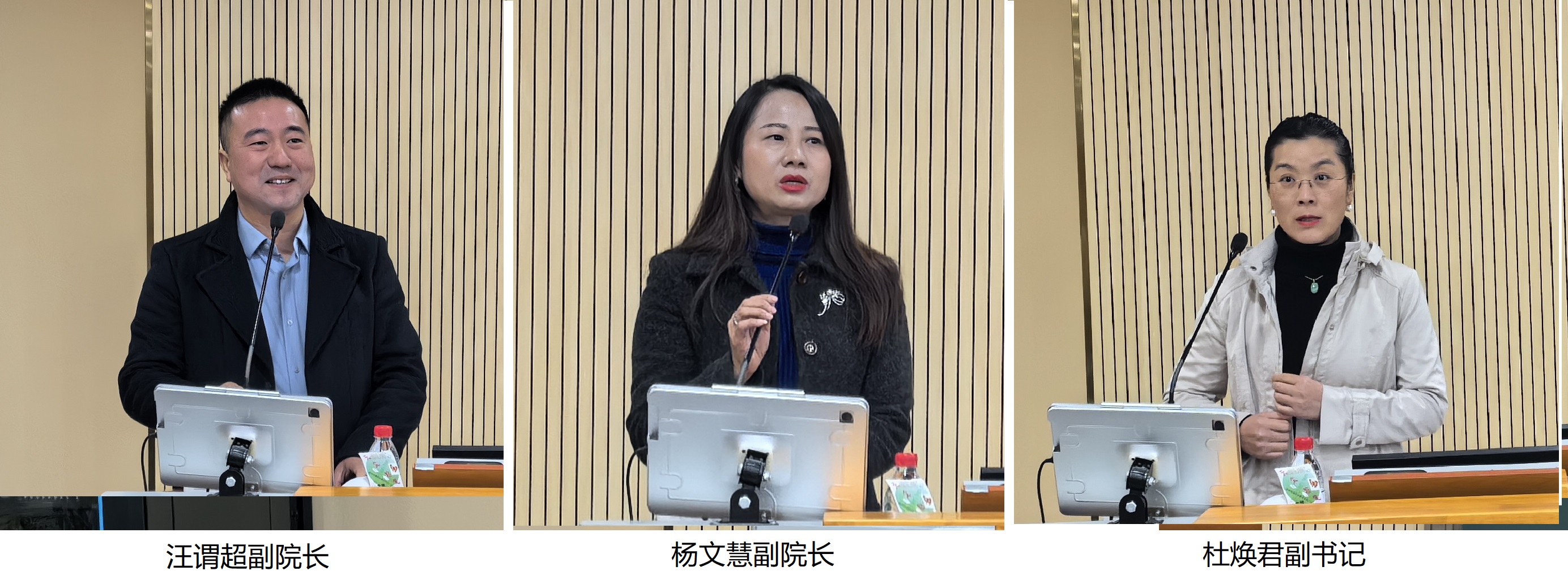 汪谓超副院长、杨文慧副院长、杜焕君副书记分别就就落实高质量发展的各项重要举措进行具体工作布置,并对涉及安全、底线的问题进行提醒,对教学纪律进行强调。