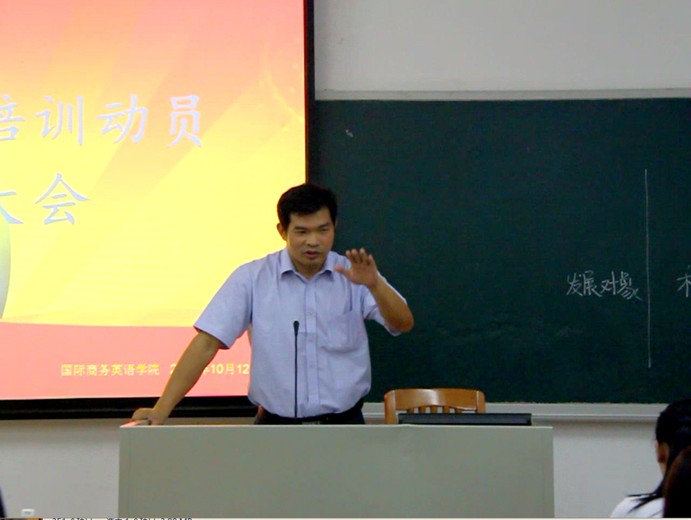 10月12号下午,国际商务英语学院党校培训动员大会在六教B203顺利召开,院党委副书记张林茂和院党建指导老师陈琳琳出席会议。会议由林萱主持,第45期入党积极分子和第5期发展对象参加了本次会议。