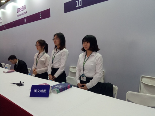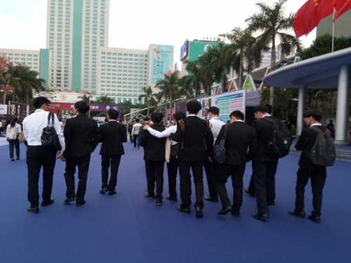商英的同学们作为此次展会的工作人员,是紧紧相扣的重要一环,应当提供优质的服务展示展会水平和证明自身的专业水平。3Fer们恰恰就做到了这一点,在前三天高度的工作中,同学们已经对岗位工作要领有所了解,对工作也开始得心应手起来,工作进程渐进佳境。咨询处的同学积累了些许经验,知道哪些咨询问题最为常见从而提供更加迅捷而准确的解疑;报到处的同学也更加熟悉办证流程,办证效率大大提高;负责调查研究的同学经过几日的磨练,也发现了最多外国观众聚集的地点,使采访更有目的性。