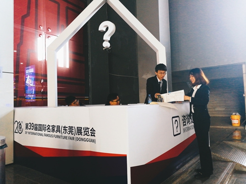 最后一天进馆参观的人数已经大幅度减少,只有部分的观众还想抓住最后的机会争取商机。尽管观众人数较少,同学们也没有丝毫怠慢,仍然坚持着他们的高标准,在各自的岗位坚守着。特别是在室外咨询点的同学,由于前一天晚上下了一场大雨,早上东莞的气温明显下降,并且风很大。尽管如此,在室外工作的同学还是战胜了困难,圆满地完成了自己的工作任务。