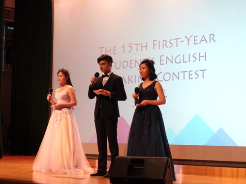 路伟健(右二)主持商英学院第15届新生口语大赛