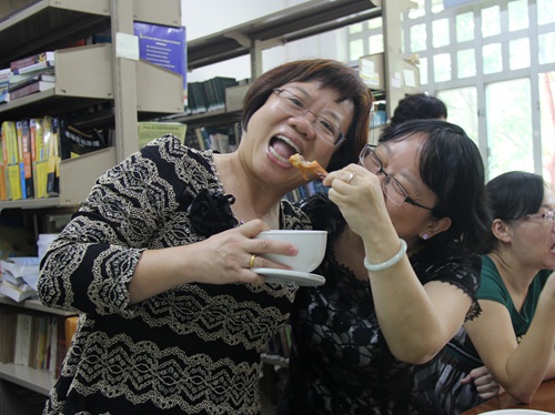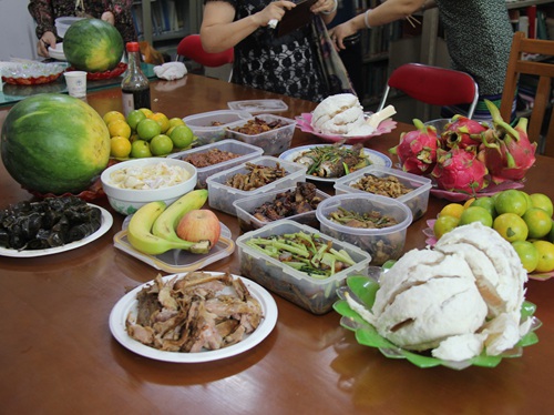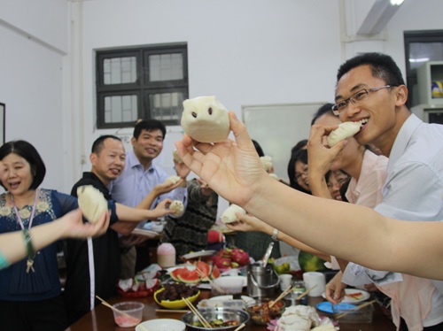 俗话说:自己动手,丰衣足食。为丰富我院教职工业余生活,增加同事之间相互交流,秉承“食得开心,远离亚健康!”的宗旨,商英学院美食协会于11月7日中午12点在3教317举行了本学期第一次美食节活动。我院教职工自备精心的制作菜肴参加本次美食节。活动期间教师们一改往日课堂上严肃认真的形象,全身心投入到美食品尝中。菜肴香瓜果香交融缭绕,赞美声谈笑声相互交织。以下是本次活动照片荟萃。