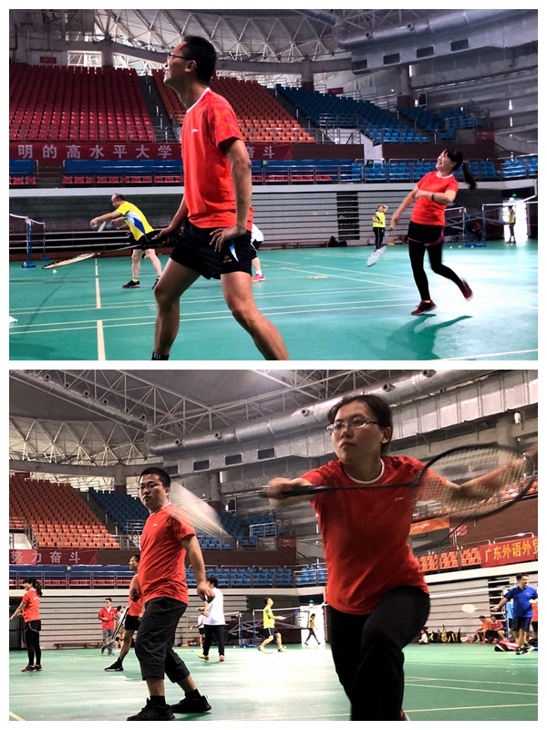 2018年广东外语外贸大学教职工羽毛球赛12月1日在南校区体育馆开赛,我院工会积极动员,精心组织,在繁忙的教学、科研、行政工作之余,继2017年之后再次实现满额参赛。汪谓超与陈华荣的跨院组合奋勇拼搏,一举战胜卫冕冠军在男双项目上封王。全部参赛队员不畏强敌,顽强拼搏,赛出了斗志,赛出了水平,体现了积极向上、快乐健康的体育精神,获得了不俗成绩,在去年获得团体总分第四的基础上再进一步获得团体季军,追评历史最佳战绩。