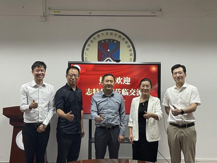 苗磊副主任为志特集团一行详细介绍了广外的学科发展、专业实力、语种数量,并重点介绍了商英学院“双高”“两强”的人才培养模式,多年来一直为社会输送既懂商务,又懂英语的高素质国际商务人才,培养的人才与市场需求高度匹配。