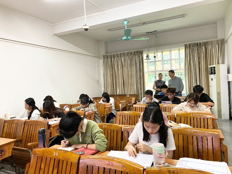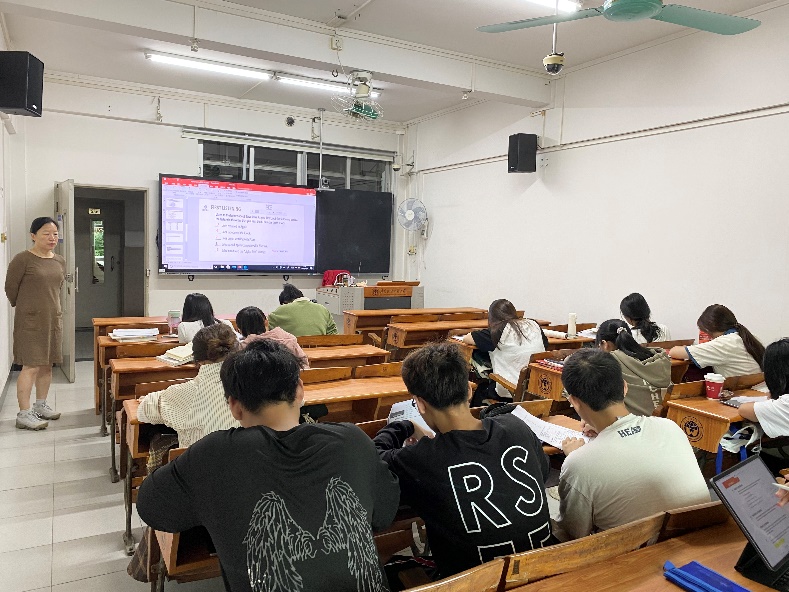 早晨7点50分,同学们按时到达教室,在相关负责老师的带领下,有序开始了本次活动,同学们或是收听英语听力,或是背诵英语单词,现场学习氛围浓厚。商英学院党委书记苏冬燕、商英学院党委副书记杜焕君,商英学院副院长汪谓超走访了2023级进行早读的课室,深入了解同学们早读的情况,倾听他们的需求,送上属于商英学院的关心关注。