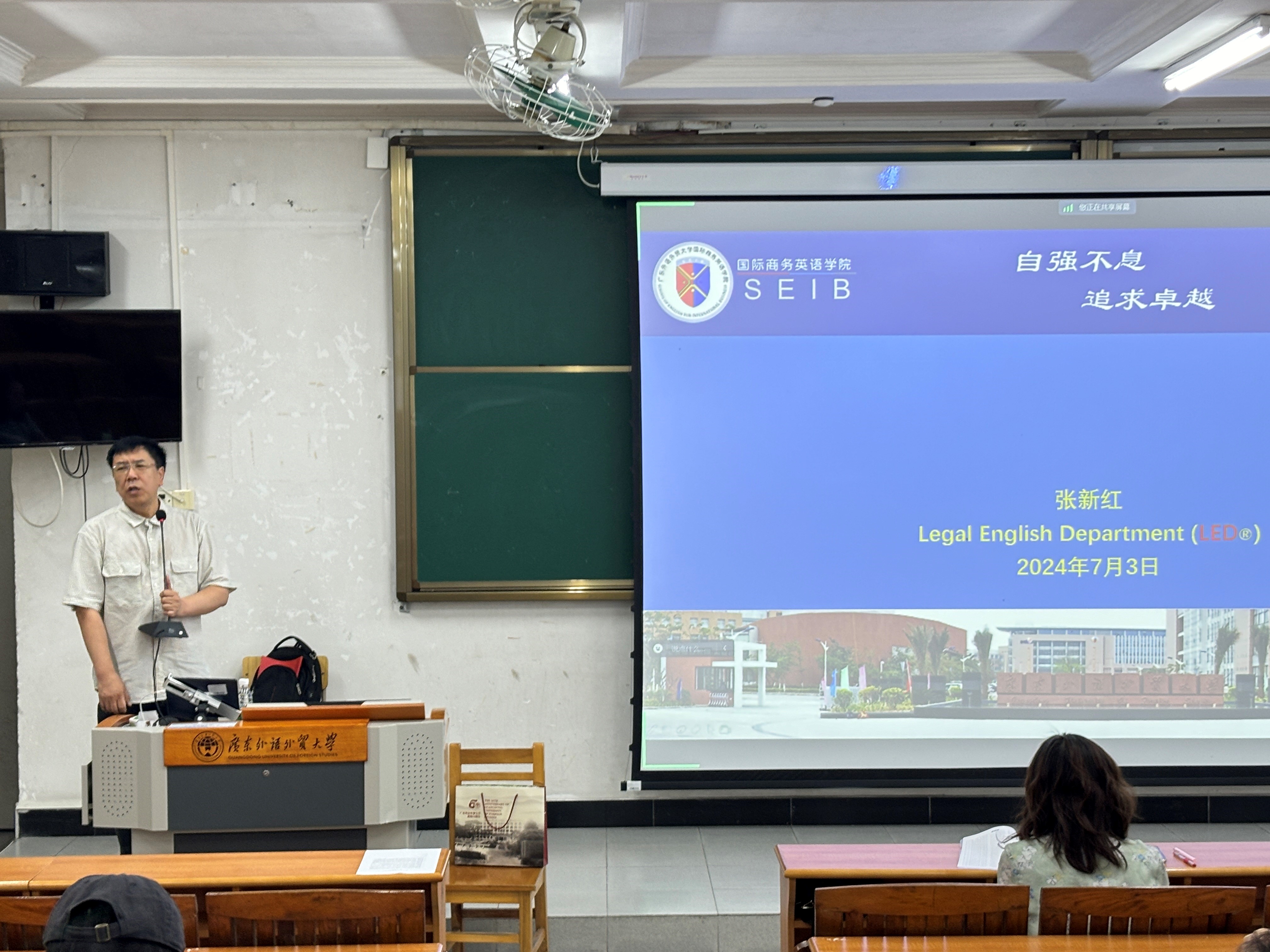 分享会前半小时,法律英语系主任张新红老师为法英系二、三年级即将参与2024年暑假实习的同学进行了岗前培训,主题为 “商英学院法律英语系法律类专业实习前培训”。张老师围绕“安全问题”、“实习礼仪与劳动纪律”、“实习经验分享”、“实习记录”等几个方面,详细介绍了本次暑期实习的相关事宜和注意事项,为同学们的实习保驾护航。除了岗位职责培训之外,张老师还特意强调了安全问题,提醒同学们注意防暑降温,以良好的体魄顺利完成本次实习。
